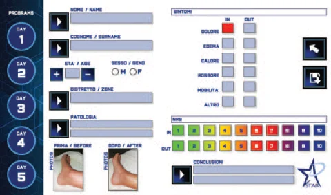 Per ogni tipo di trattamento, il Touch Control Plus combina due tasti di consultazione: il primo è un pulsante INFO che l'operatore può consultare, ascoltare le informazioni e suggerire gli stimoli grazie all'Assistente vocale; il secondo è un tasto VIDEO in cui l'operatore può entrare per osservare come eseguire il trattamento selezionato.