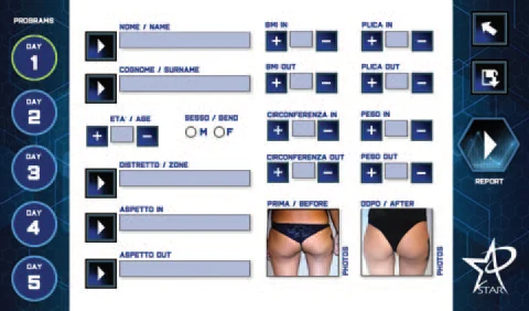 Confrontando questi dettagli prima e dopo le sessioni, otterrai un rapporto completo di tutti i risultati. Oltre alla circonferenza, al BMI e altri valori prima e dopo i trattamenti, è possibile inserire immagini anche pre e post trattamento.